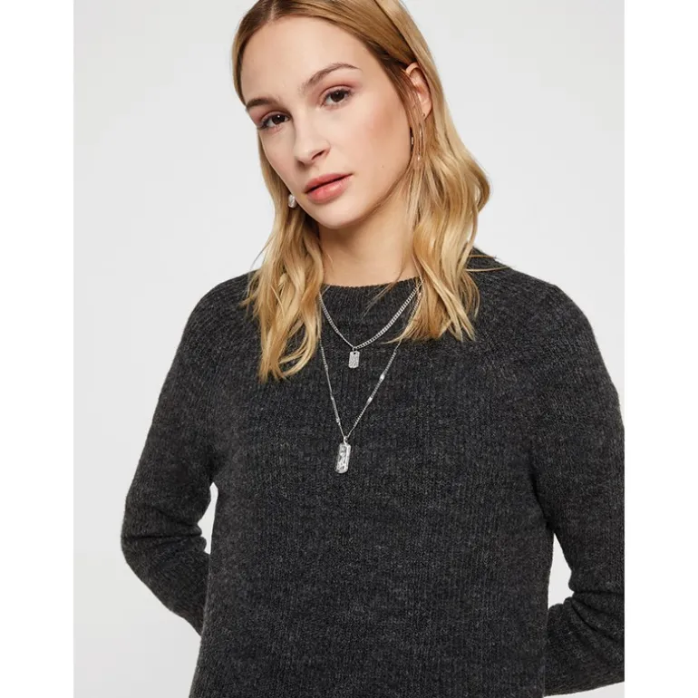 - Ribstrikket hals.