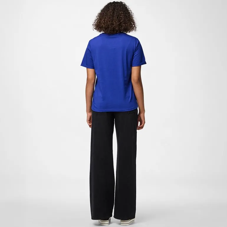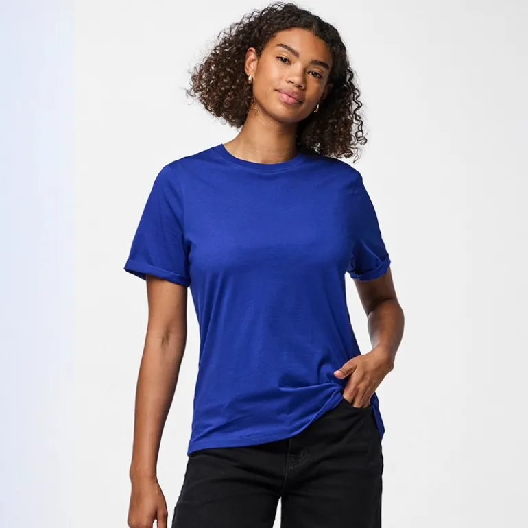 Pieces Dame Ria fold op ensfarvet t shirt Mazarine Blue