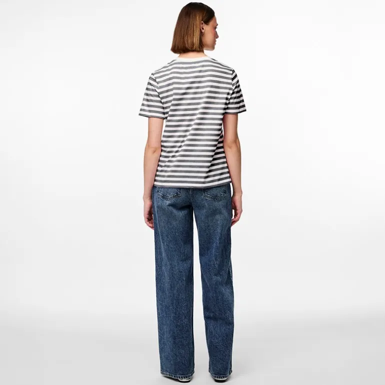 Pieces Dame Ria Stribet T-shirt Ultimate Grey
