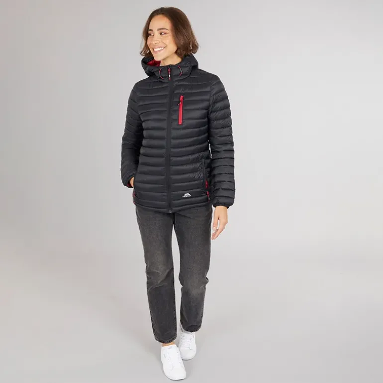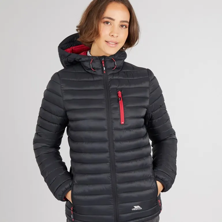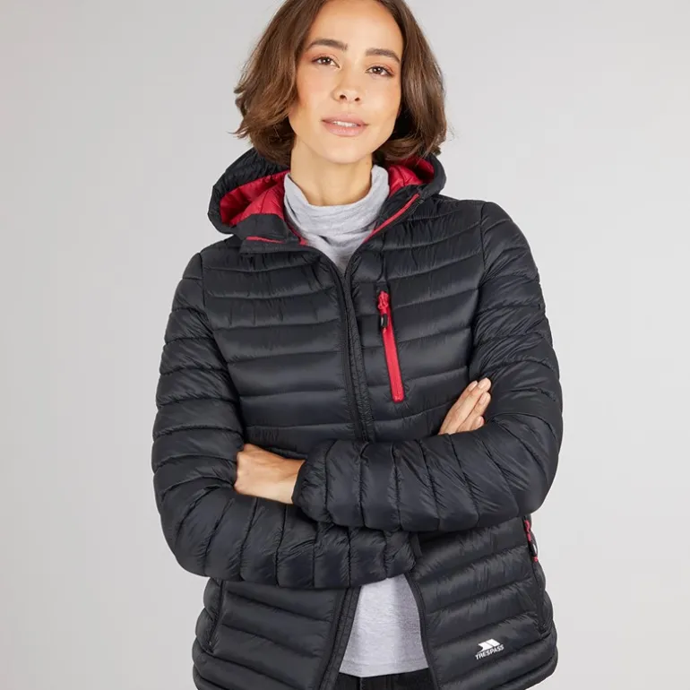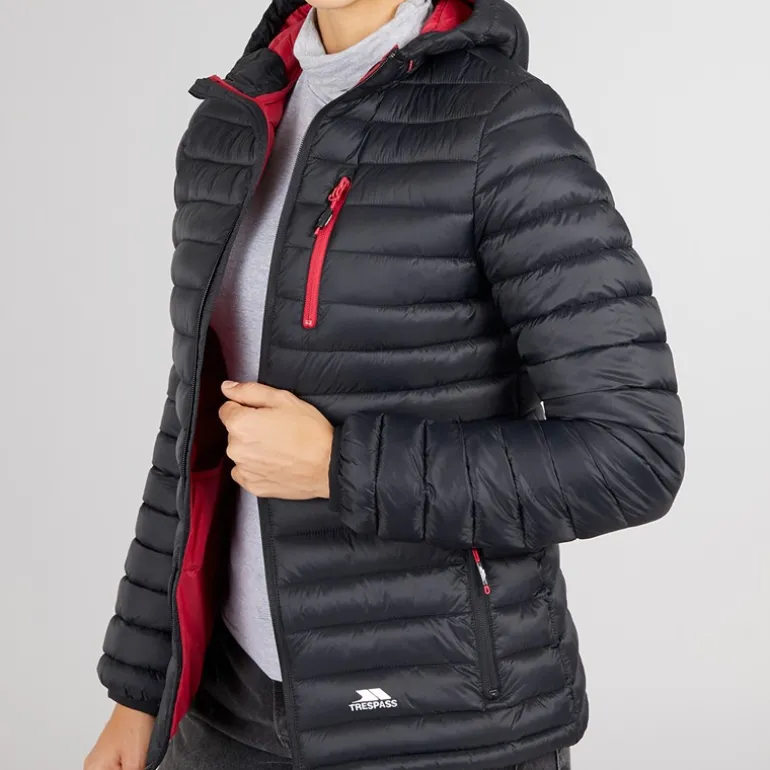 Trespass Dametøj Lenka Vatteret Hættejakke Sort/Hindbær