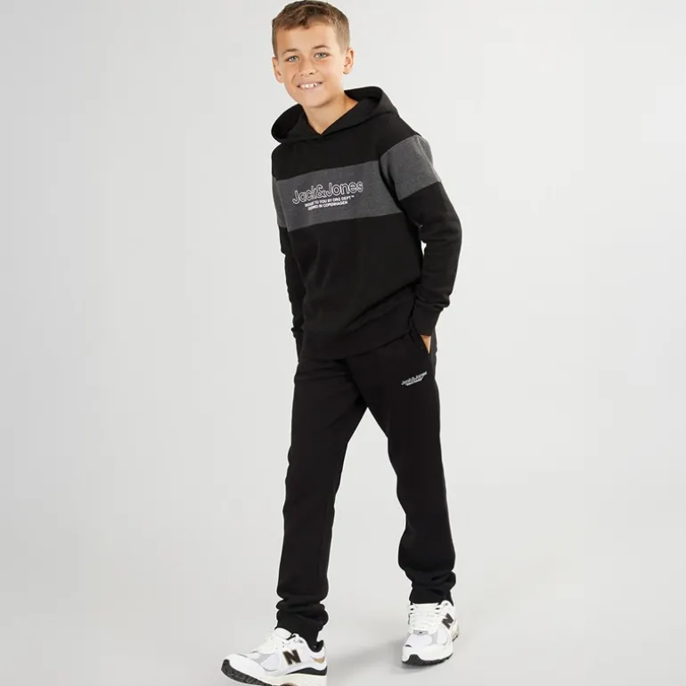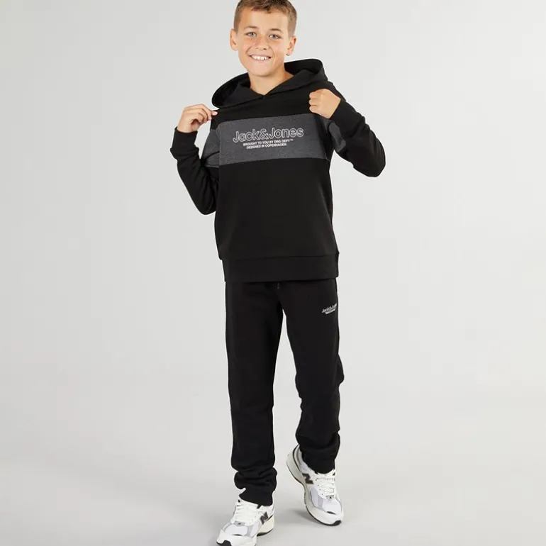 JACK & JONES Drenge Lakewood Hættetrøje Og Joggingbukser Træningsdragt Sort/Mørk Grå Marl Panel