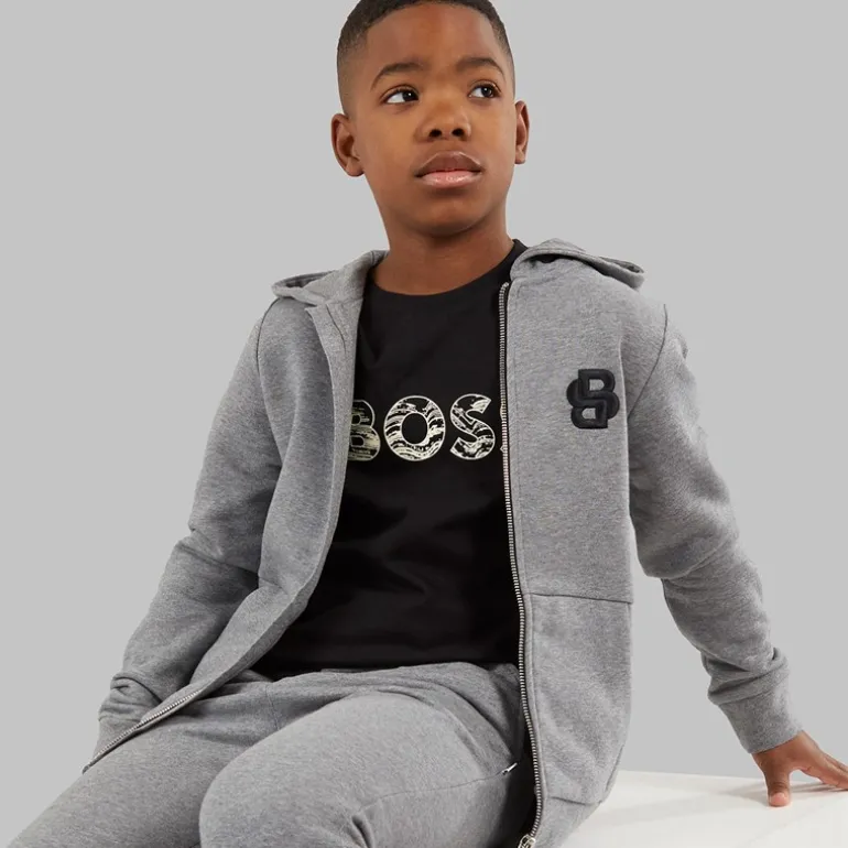 BOSS Drenge lynlås hættetrøje Heather Grey
