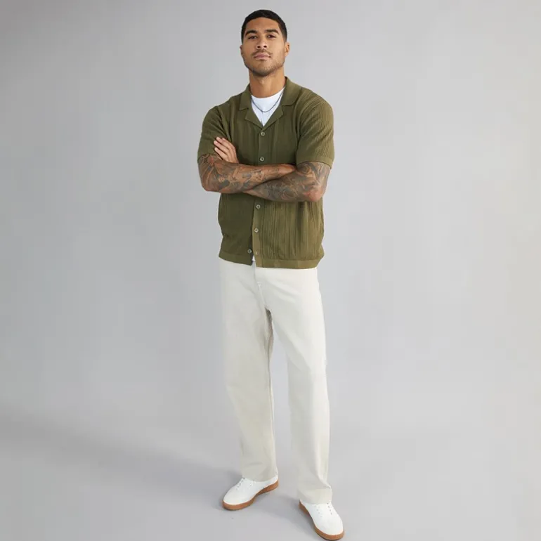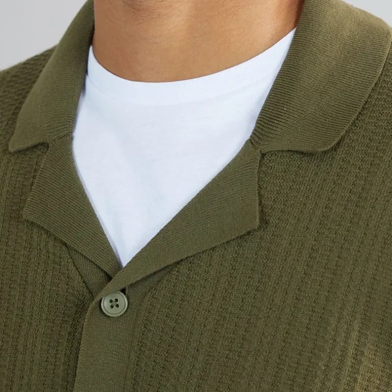 PRODUKT Herre Dave Strik Kortærmet Skjorte Olive Night