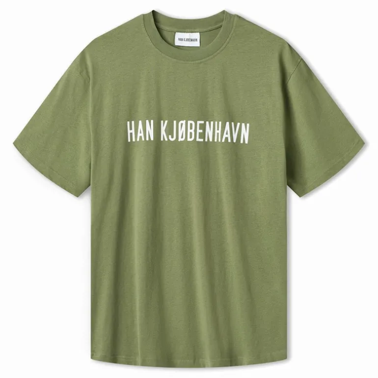 Han KJØBENHAVN Herre Logo Boxy T-Shirt Army Grøn