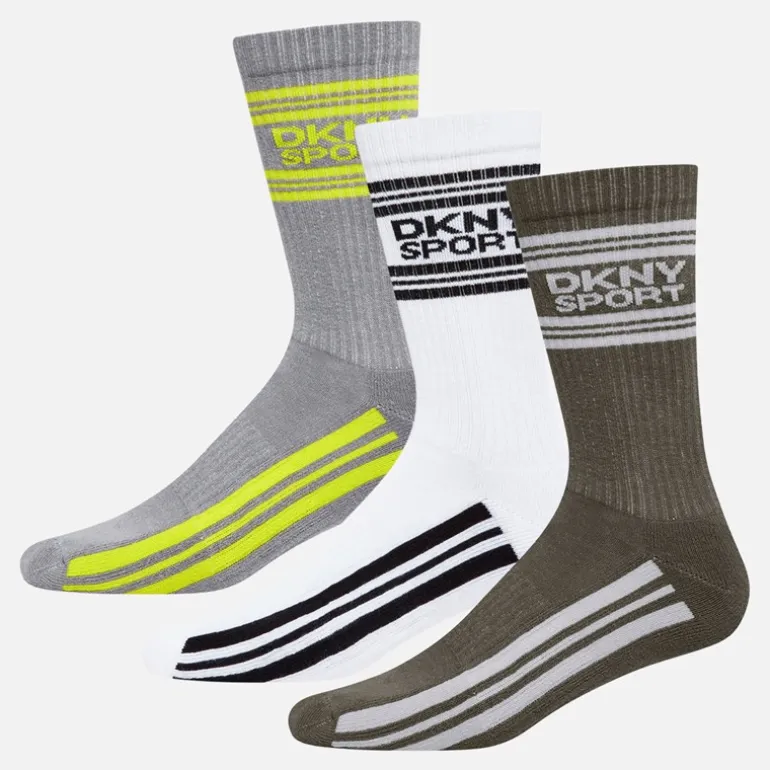 DKNY Herre Martense Tre Pak Crew Sokker Khaki/Hvid/Grå