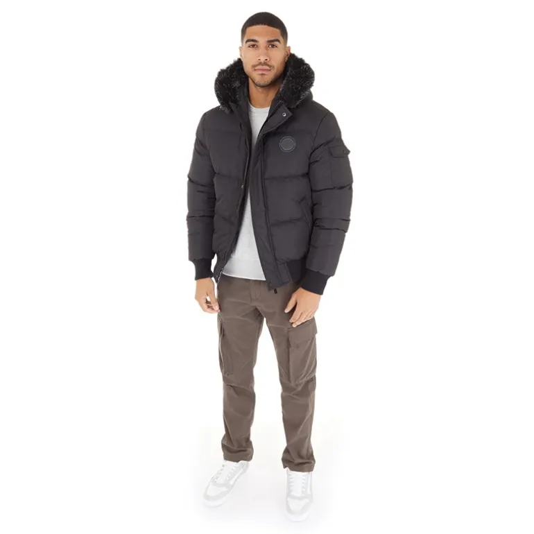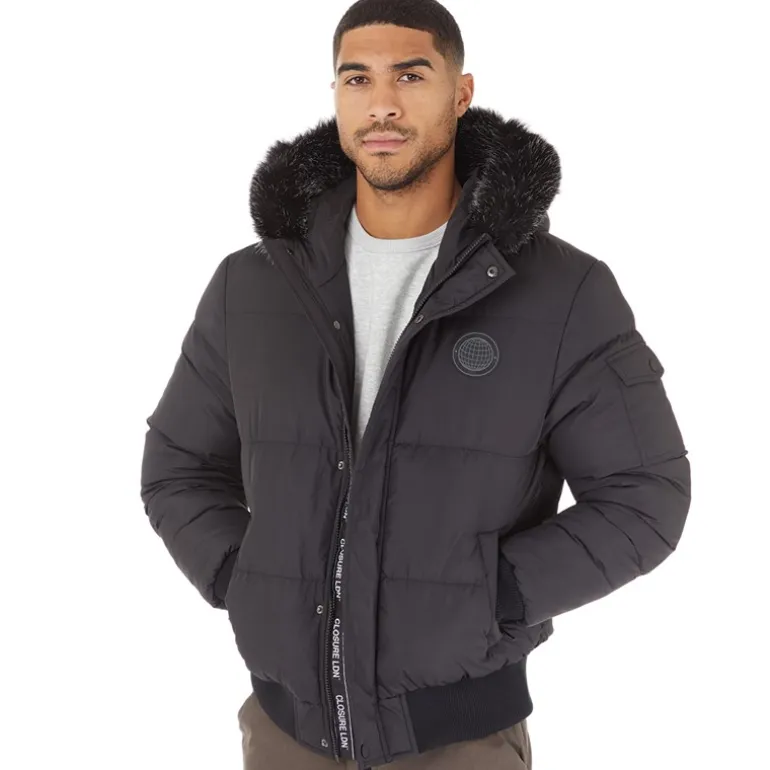 Closure London Herre Pufferjakke med pelshætte Sort