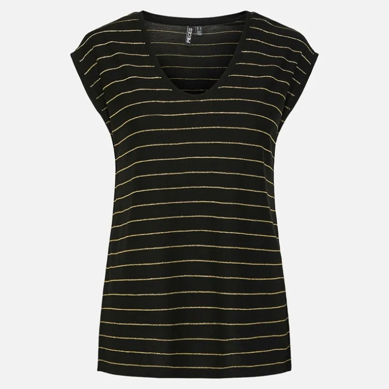 Pieces Dame Billo Lurex T Shirt Sort