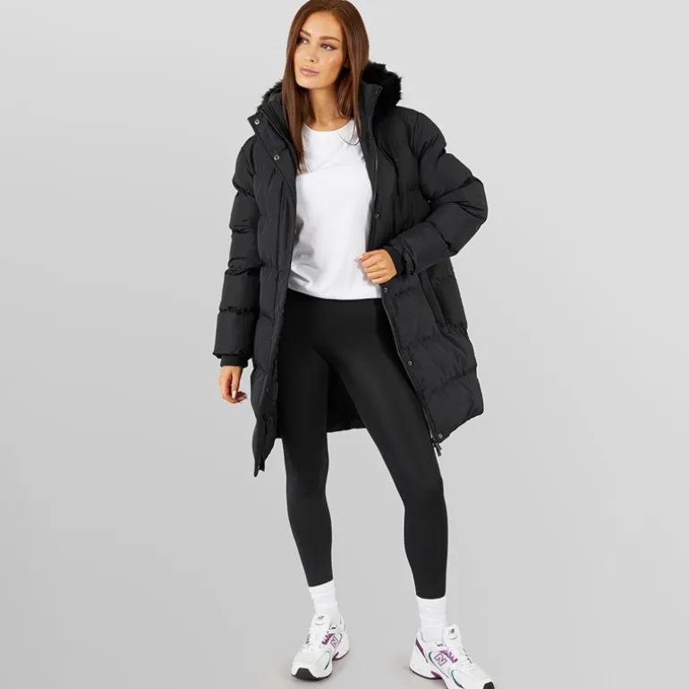 Closure London Dame Lang Lang Faux Fur Parka med Hætte Sort