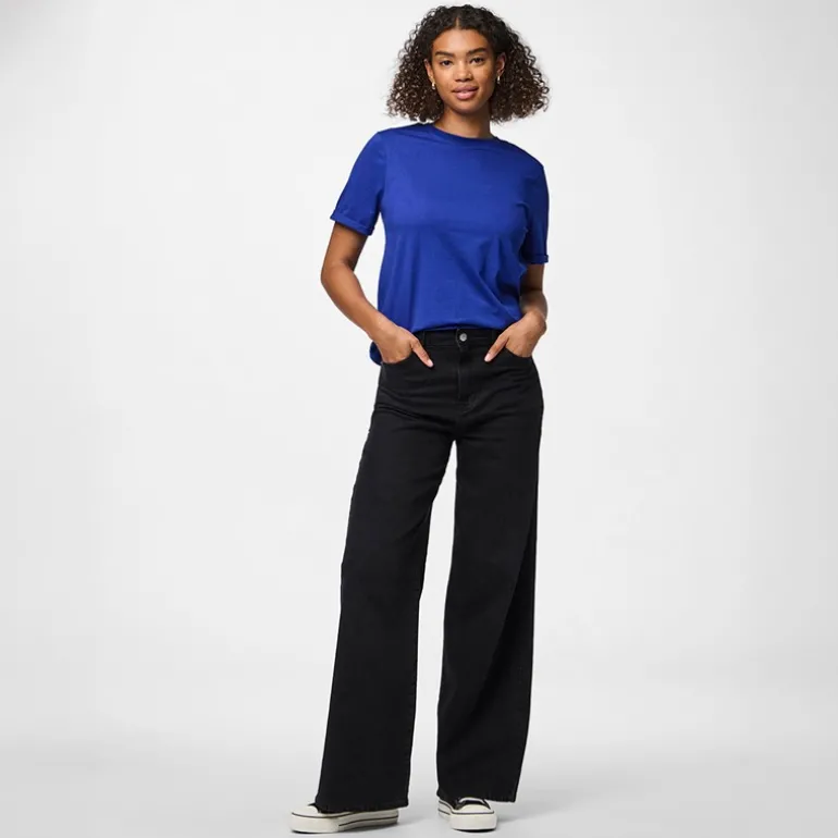 Pieces Dame Ria fold op ensfarvet t shirt Mazarine Blue