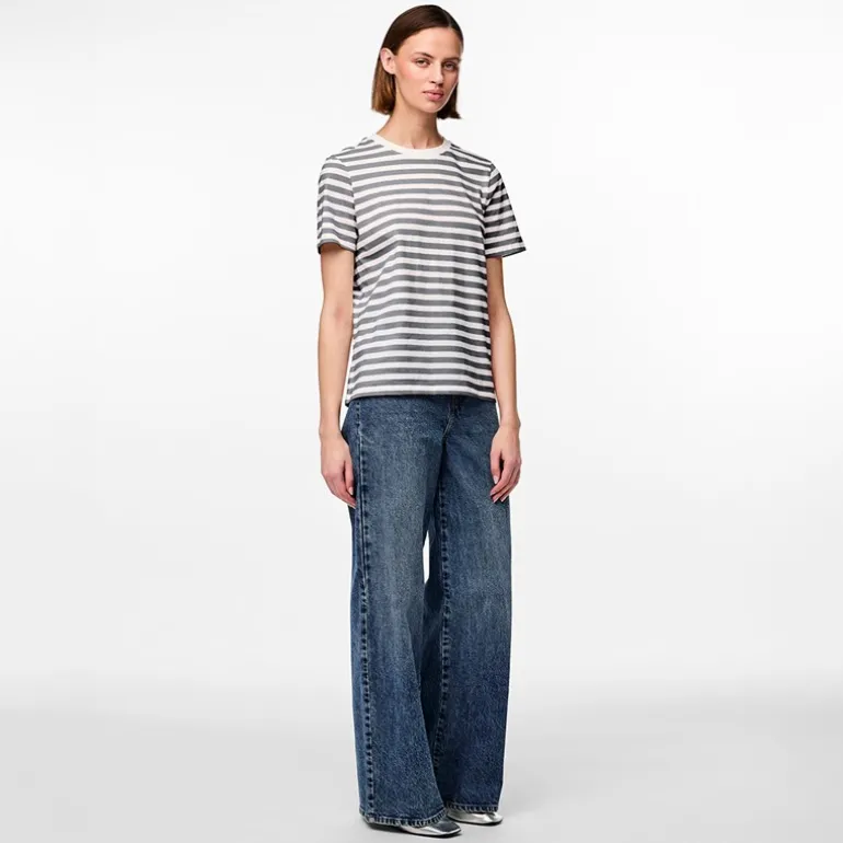 Pieces Dame Ria Stribet T-shirt Ultimate Grey