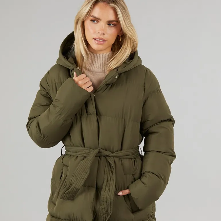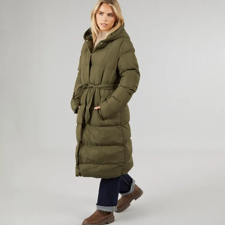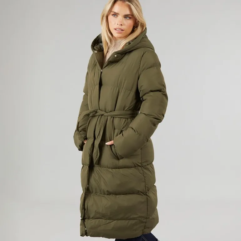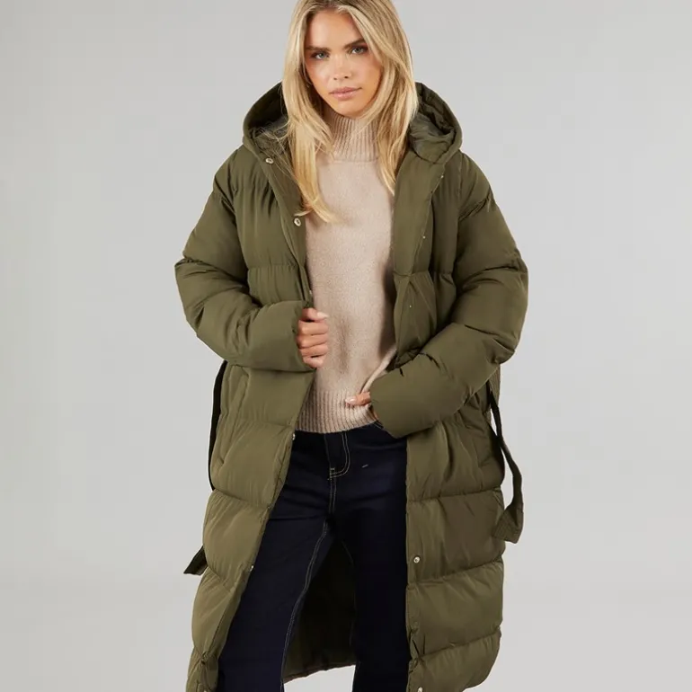 Brave Soul Dame Vindtæt Lang Pufferjakke Khaki