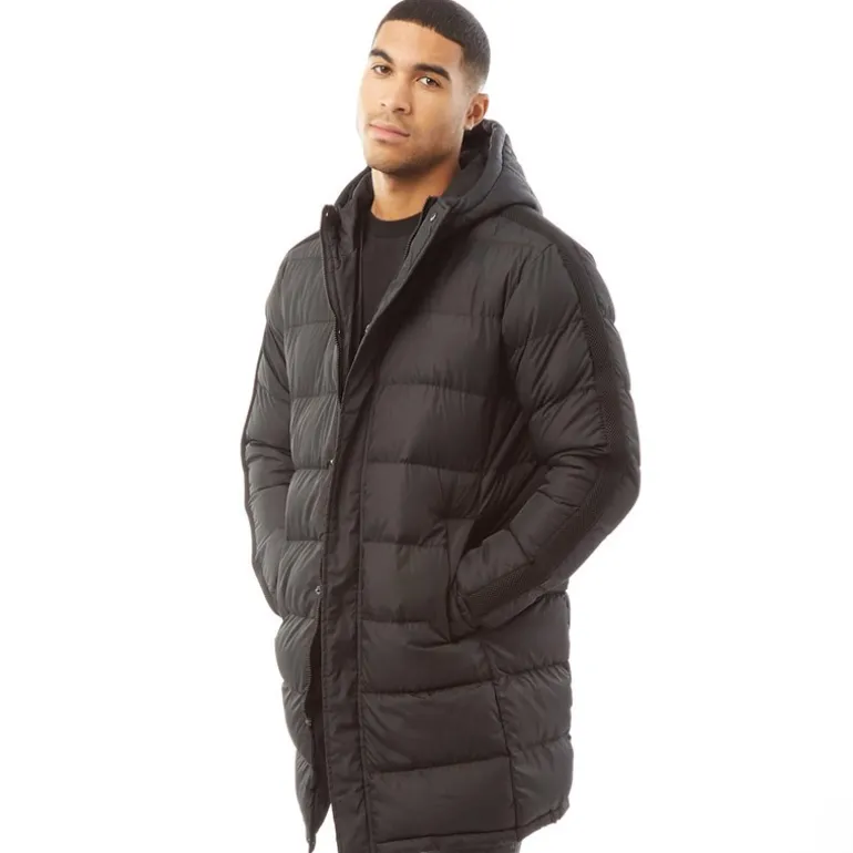 Brave Soul Herre Allenb Polstret Hættetrøje Lang Liniejakke Sort