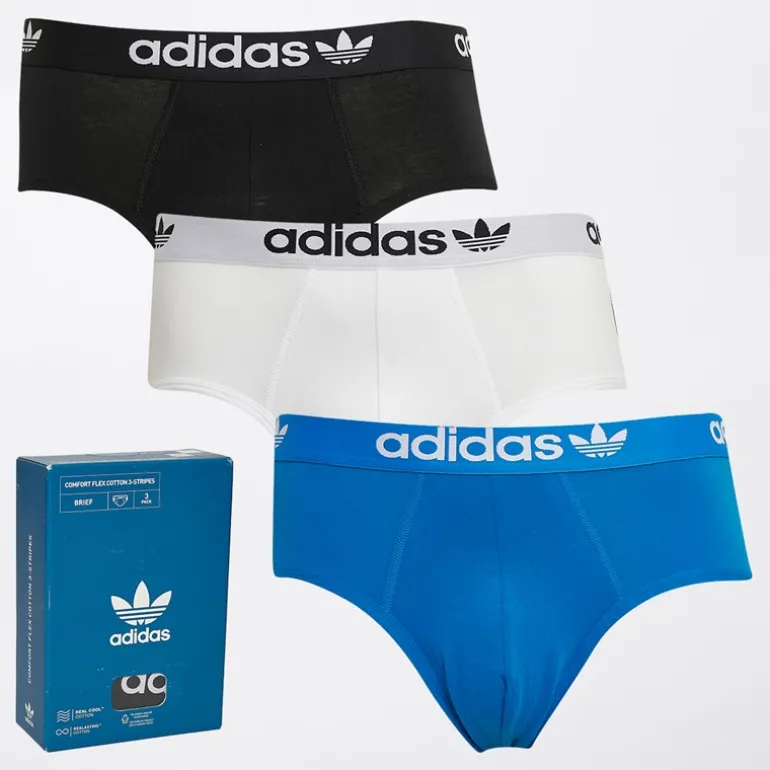 adidas Originals Herre Comfort Flex 3-Stripes Tre Pak Underbukser Sort/Blå/Hvid