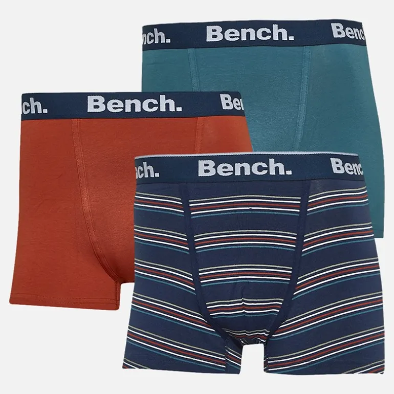 Bench Herre Dairmont Tre Pak Underbukser Garnfarvede Striber / Mørk Rust / Falmet Blågrøn
