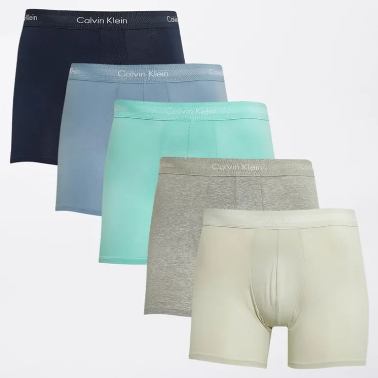 Calvin Klein Herre Fem Pak Boxer Trusser Shrn / Faded Denim / Cel Tnt / Grey Heather / Beau Blue