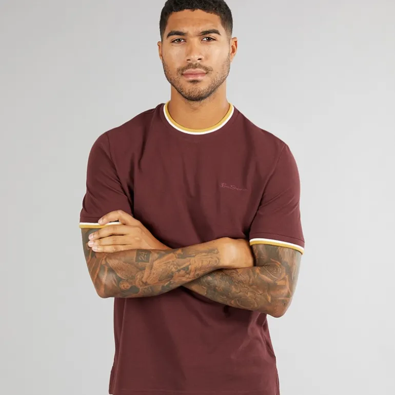 Ben Sherman Herre Pique Ringer T-Shirt Vin