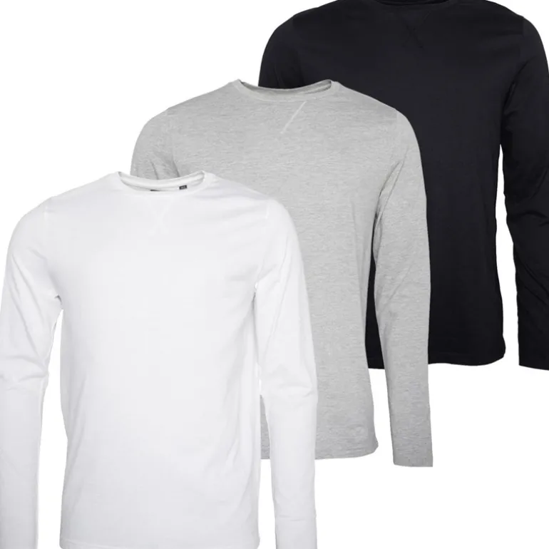 Brave Soul Herre Prøvepakke Tre Langærmede T-shirts Sort/Hvid/Lysegrå Melange