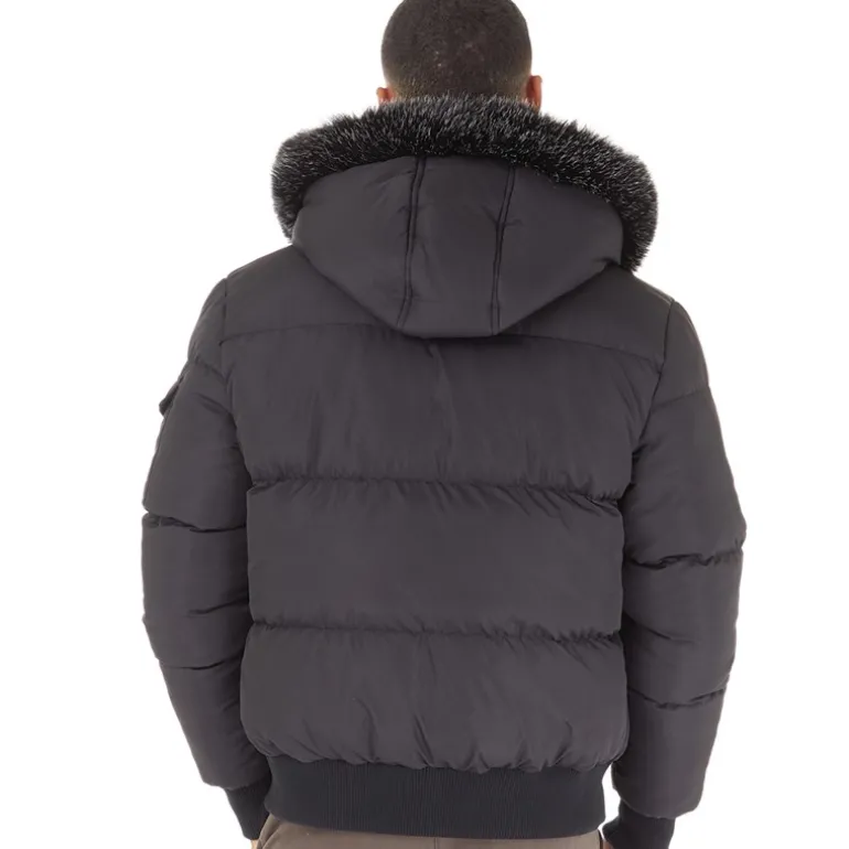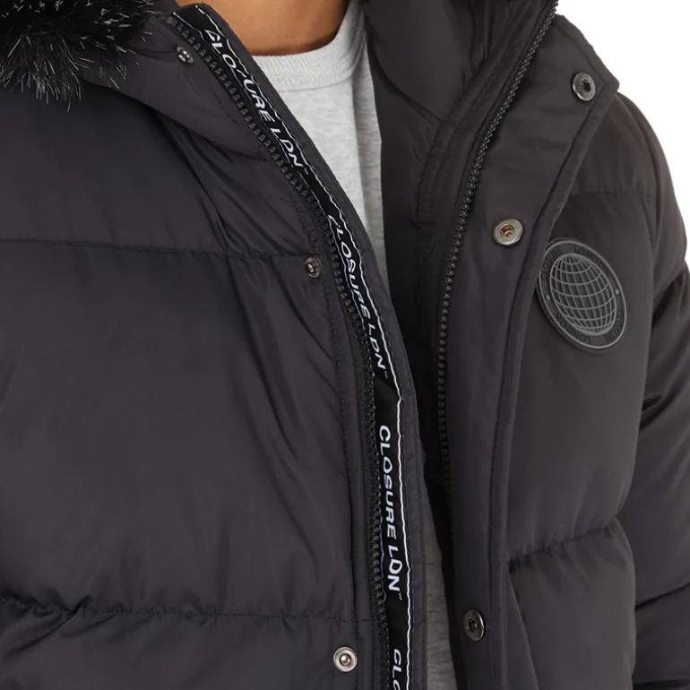Closure London Herre Pufferjakke med pelshætte Sort