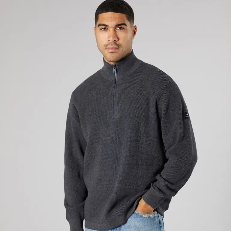 Solid Herre striktrøje mørkegrå melange Dar Grey M
