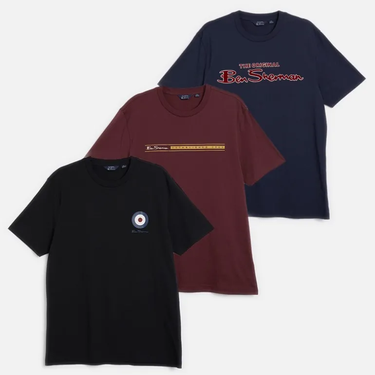 Ben Sherman Herre Tre Pak Blandede T-Shirts Multi