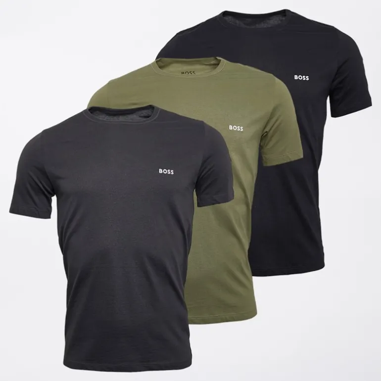 BOSS Herre Tre Pak T Shirts Grå/Khaki/Sort