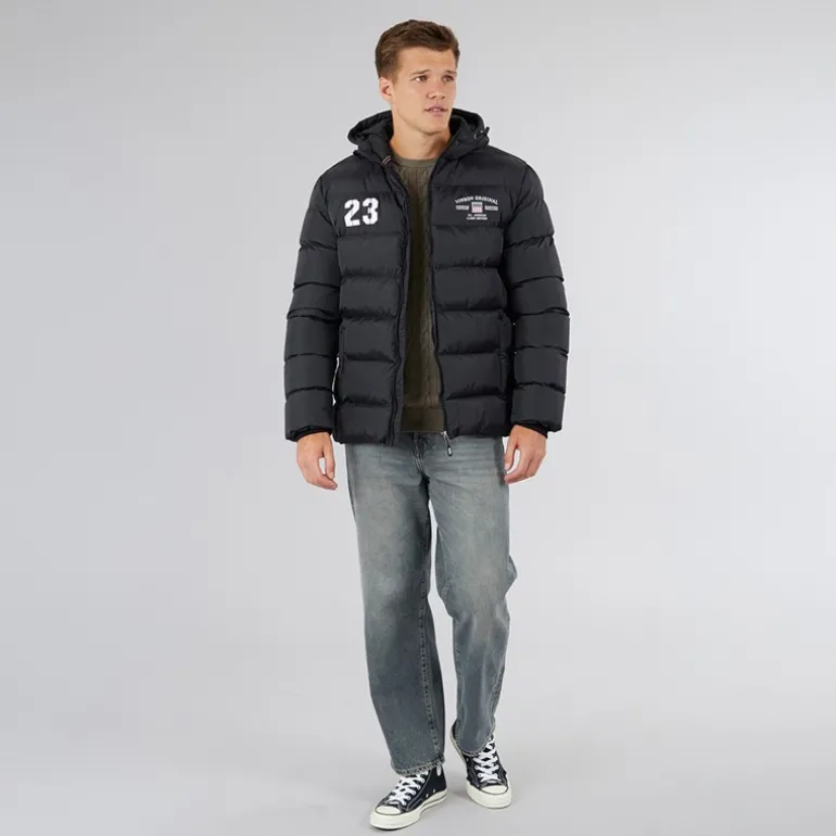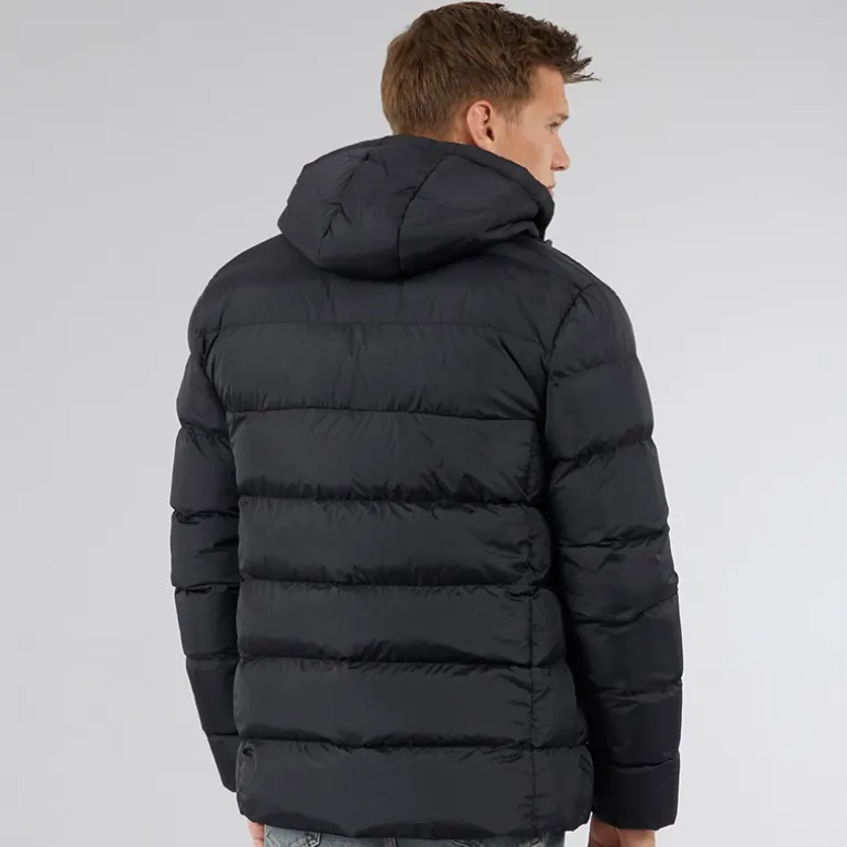- Påsyet justerbar hætte med toggle.