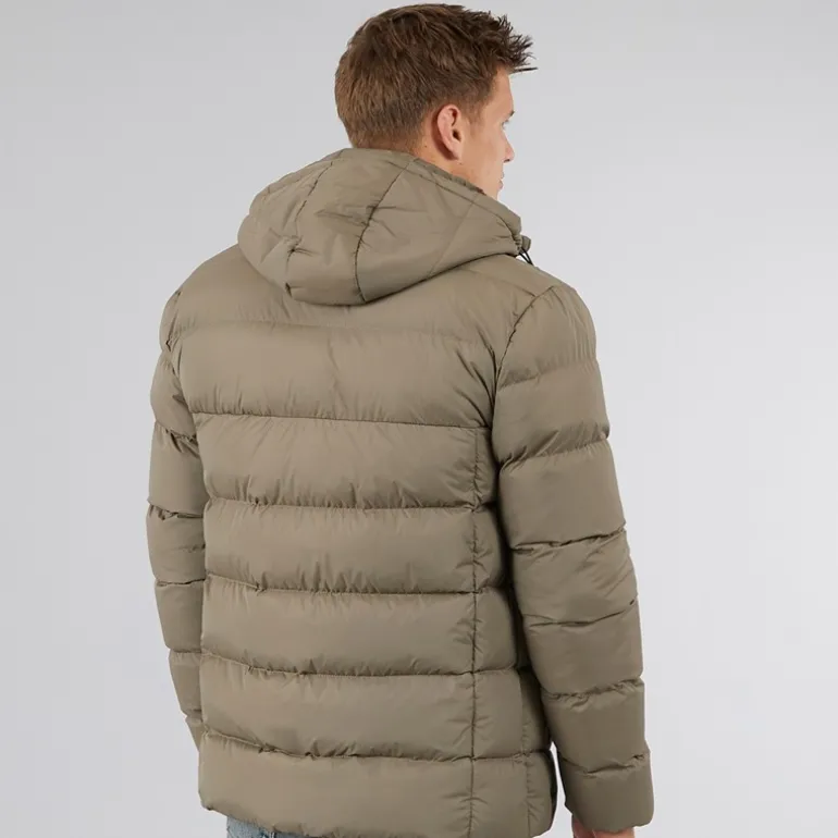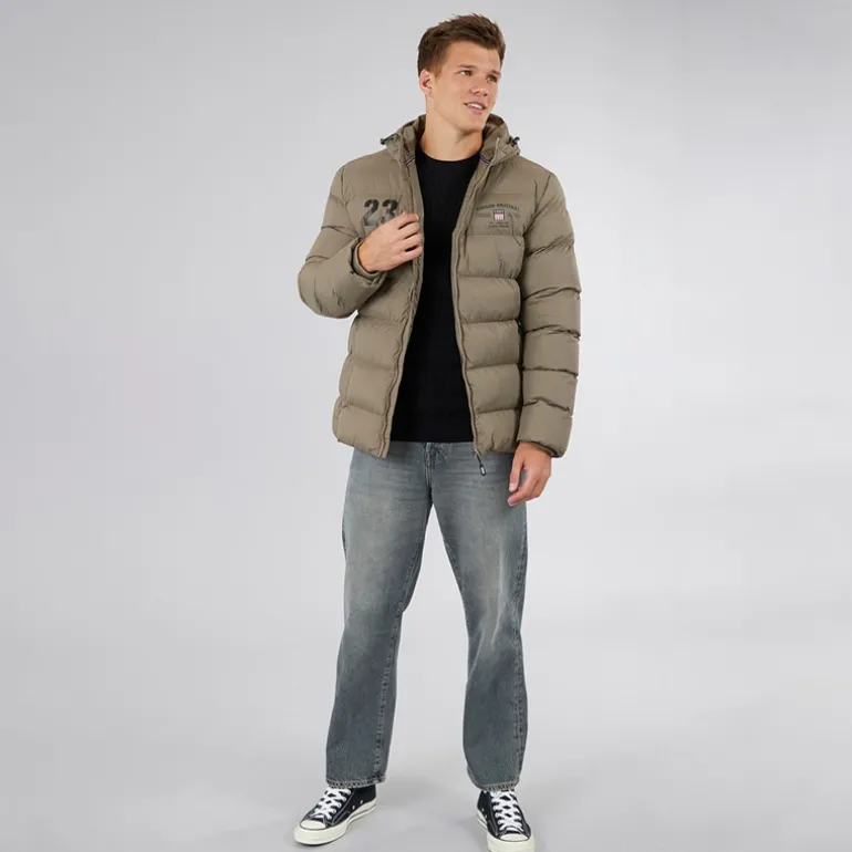 - Påsyet justerbar hætte med toggle.