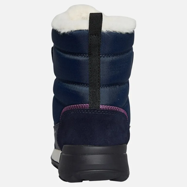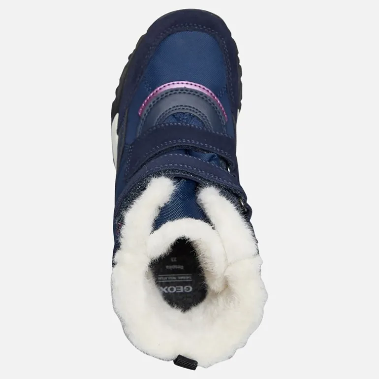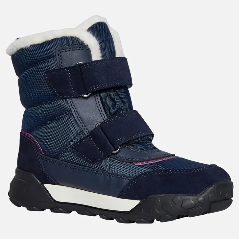 GEOX Junior Piger Trekkyup Dobbelt Rem Pelsforet Støvler Marineblå/Lilla